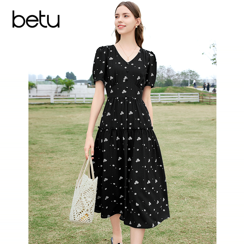 太平鸟黑珍珠夏MINGMA联名收腰连衣裙短A1FAF2184 张婧仪同款