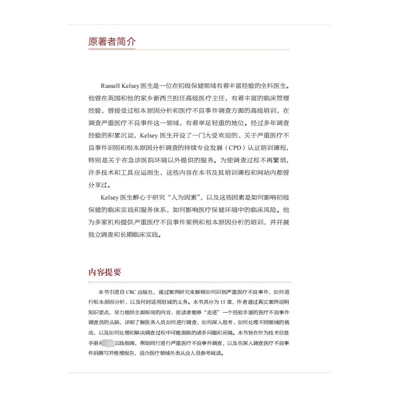 调查与报告 英 9787110104507 患者安全 Y库 社 严重医疗不良事件 科学普及出版 正版 拉塞尔·凯尔西