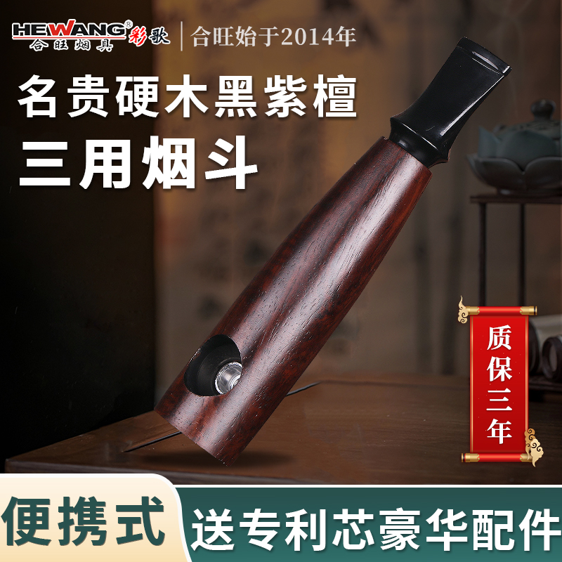 旱烟斗 黑檀木烟袋锅过滤直通式 彩歌手工实木烟斗男士 小号便携式