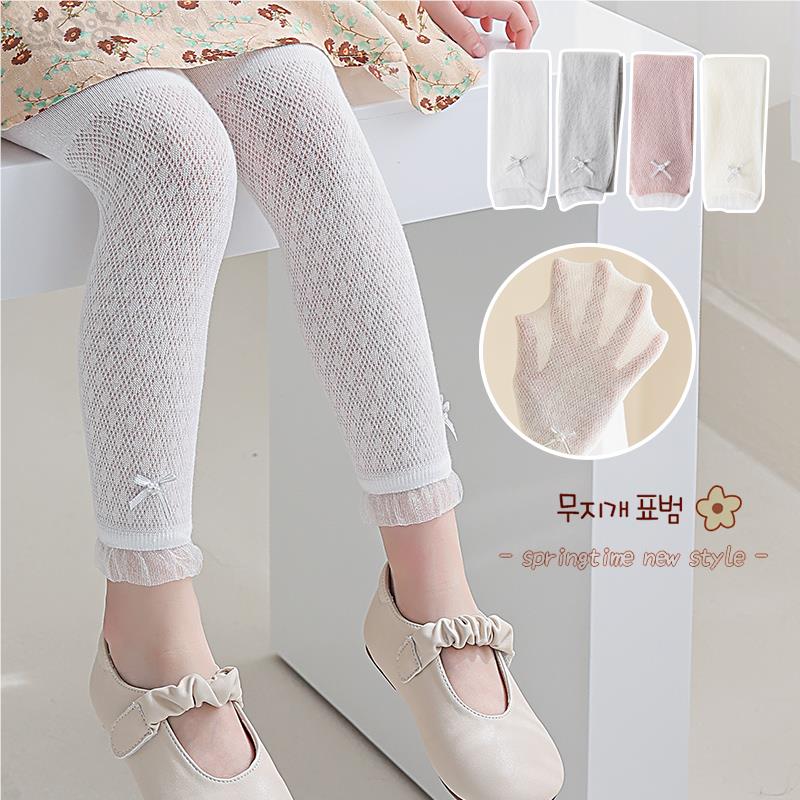 袜外穿洋气儿童九分裤 女童打底裤 网眼纯棉女宝宝白色连裤 薄款 夏季
