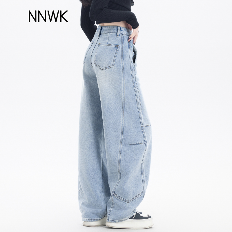 子美式 浅色弯刀牛仔裤 裤 春秋宽松今年流行爆款 镰刀加绒 女2025新款
