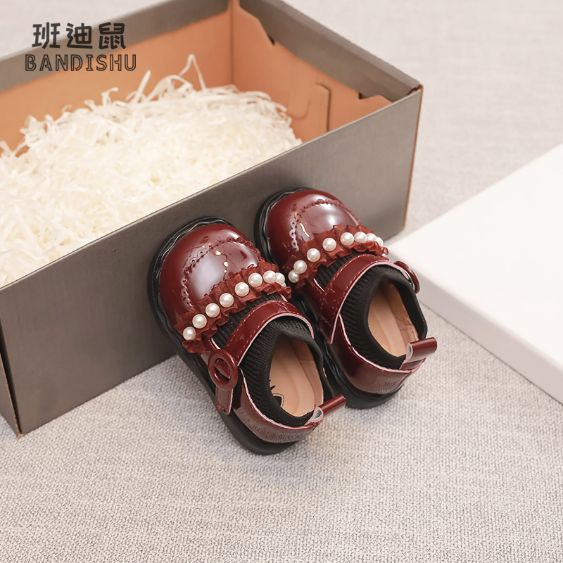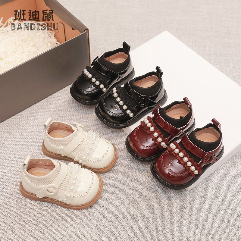 婴儿软底防滑学步鞋 女宝宝公主鞋 珍珠女童小皮鞋 秋冬时尚 2025新款