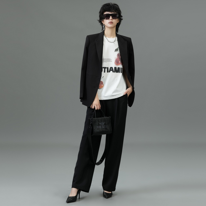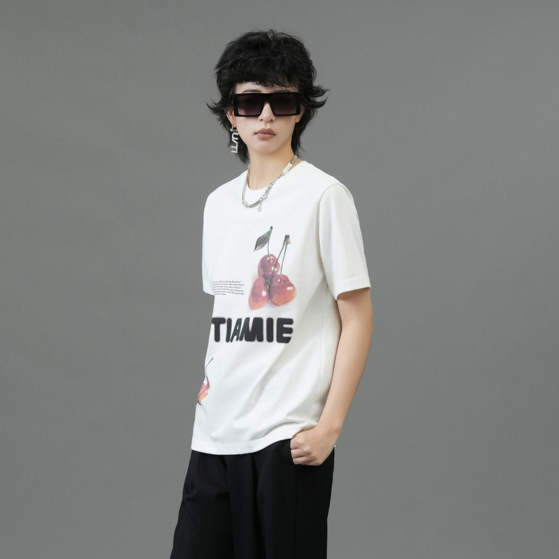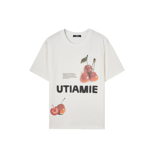 新款 百搭潮圆领休闲上衣尤缇2025春季 TI趣味樱桃印花棉质T恤女