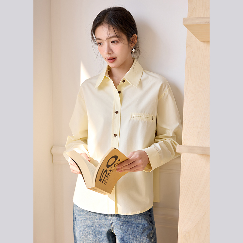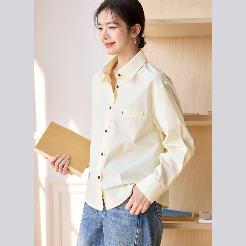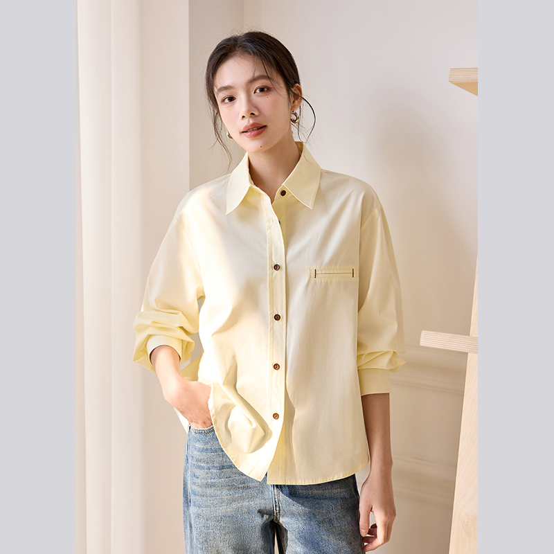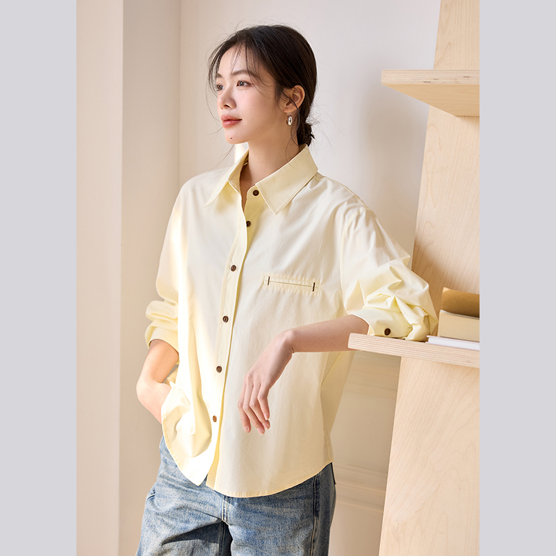 上衣 通勤天丝棉长袖 莱赛尔奈格薇儿小个子黄色衬衫 女2025春秋新款
