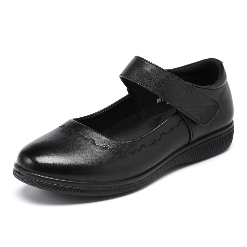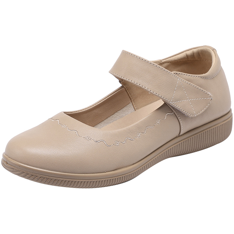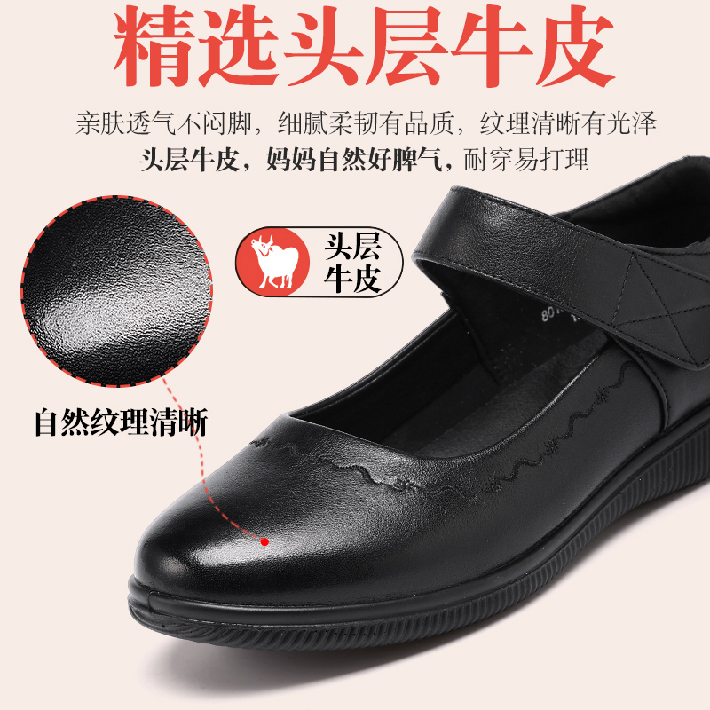 女鞋 中老年防滑舒适大码 清仓 平底浅口老人单鞋 旺奈真皮软底妈妈鞋