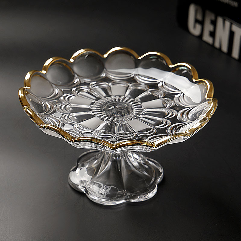 轻奢创意小高脚糖果盘精致浮雕玻璃干果零食摆放盘招待甜点水果盘