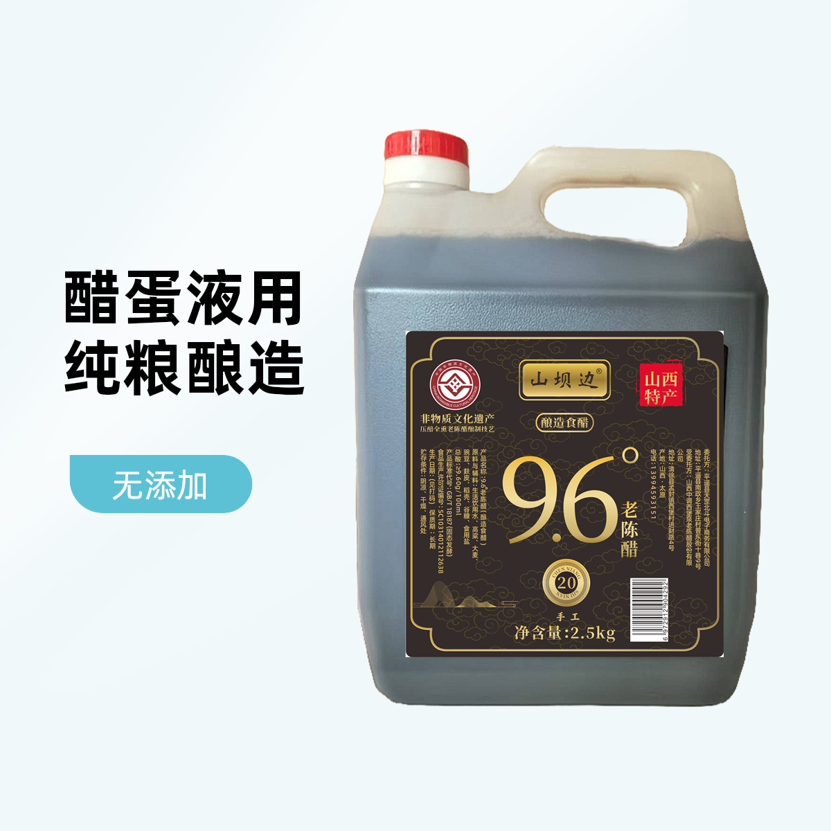 山坝边老陈醋 9.6度20年纯粮食醋清徐老陈醋原浆泡黑豆泡醋蛋液用
