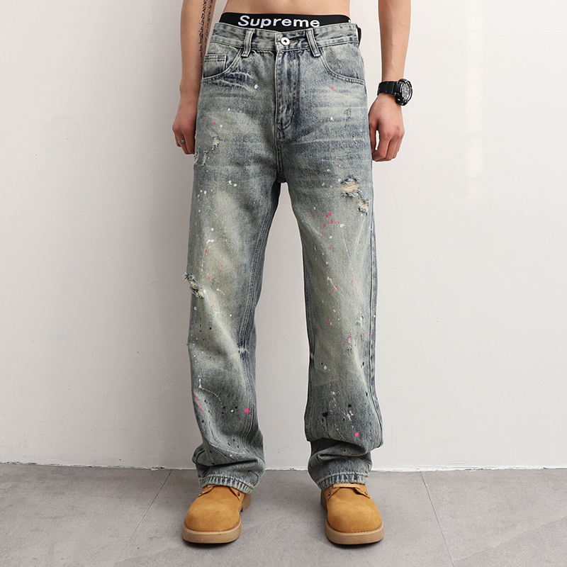 子宽松直筒休闲长裤 迈特优牛仔裤 高街水洗裤 美式 子 男春秋新款