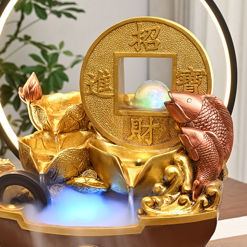 轻奢招财流水摆件循环水景客厅茶室玄关转运球风水轮加湿器开业礼