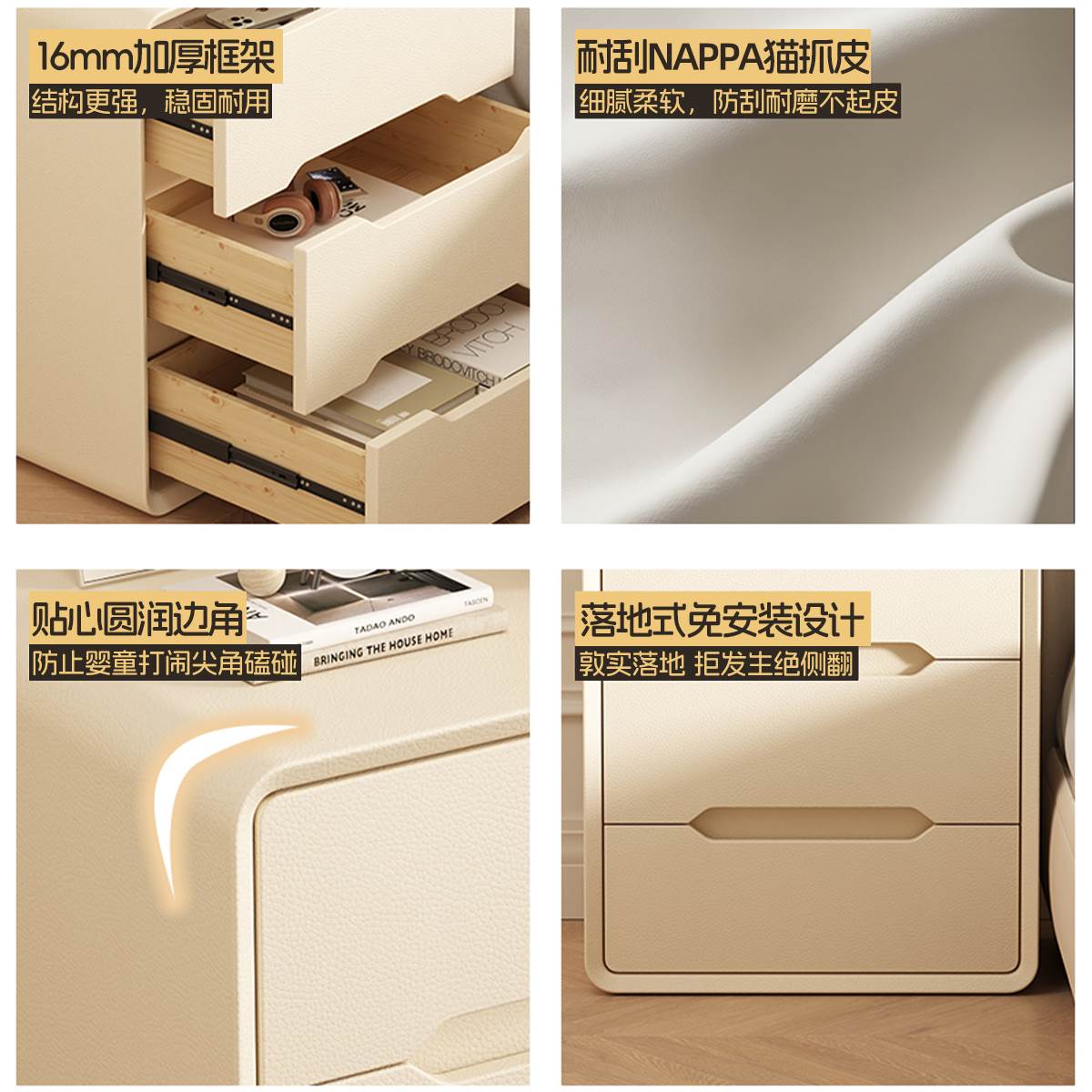 全实木奶油风床头柜2024新款 简约现代床边柜子家用卧室小型收纳柜