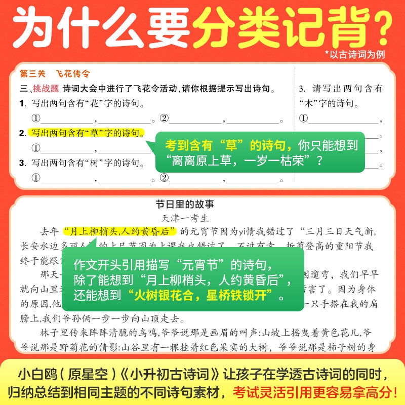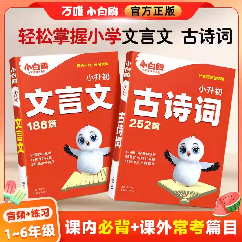 2026小白鸥小升初文言文186篇小学通用专项强化训练必背古诗252首分类背英语阅读理解完型填空天天练小学语文数学英语基础知识衔接