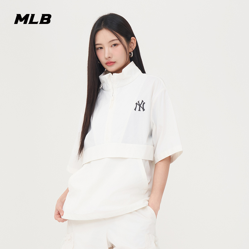 新款 25夏季 WJB05 男女情侣防泼水半拉链凉感防晒套头短袖 MLB官方
