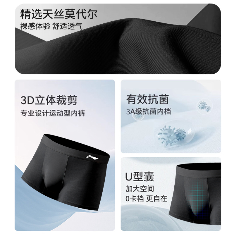 头裤 李宁男士 舒适透气运动青少年四角短裤 男平角裤 衩男生宽松 内裤