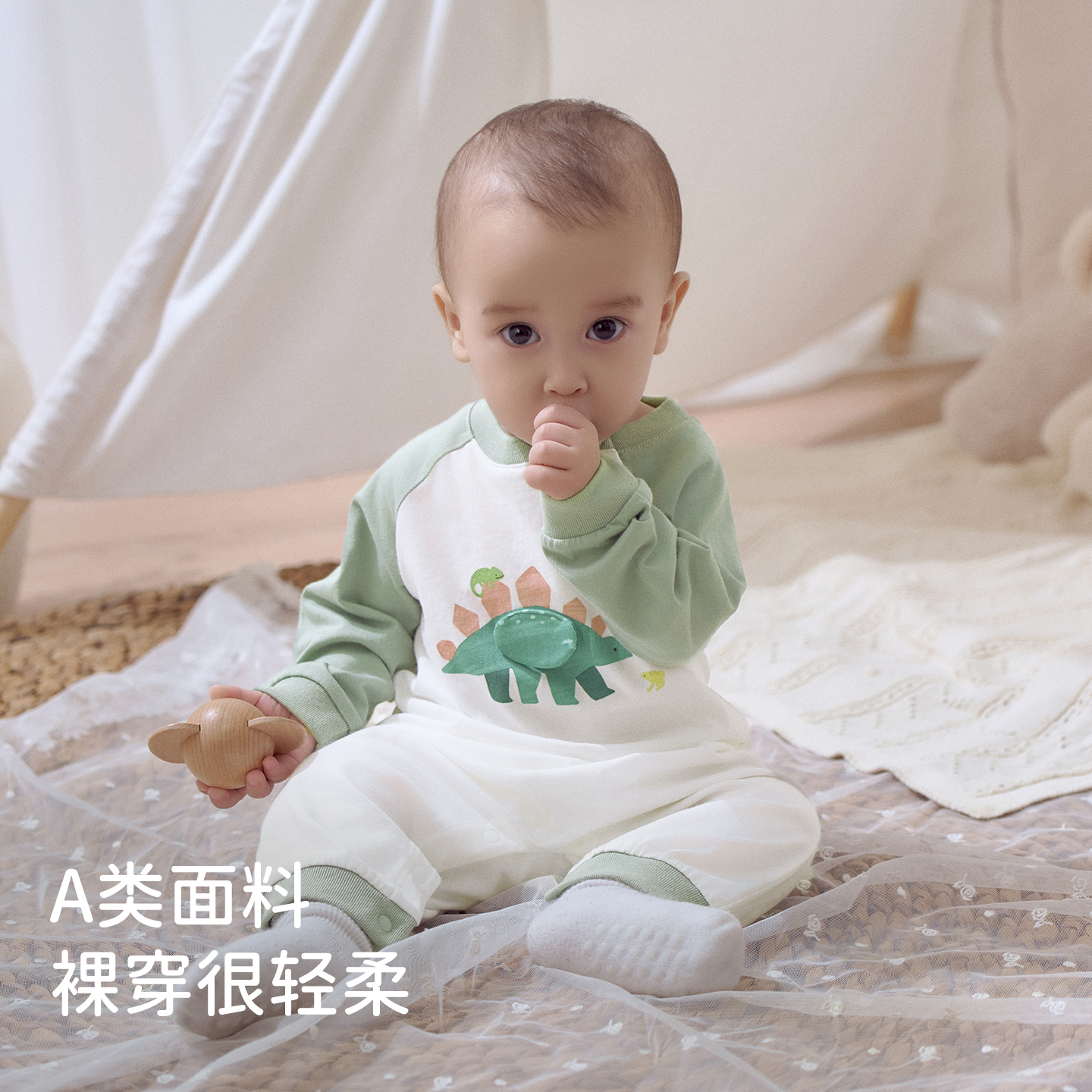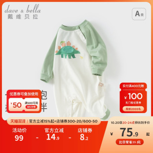 戴维贝拉新生儿爬服2025秋装 男宝抗菌防螨连体衣婴儿纯棉哈衣 新款