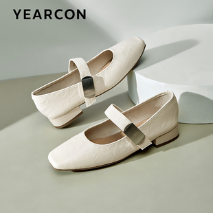 女 羊皮芭蕾玛丽珍单鞋 董洁董璇小酒窝同款 真美诗摩卡慕斯25秋新款