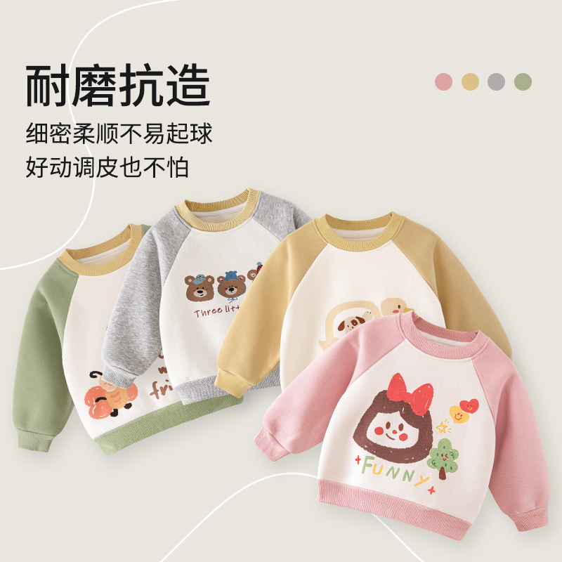 上衣冬季 宝宝加绒卫衣秋冬2024新款 男女婴儿衣服小童保暖加厚套装