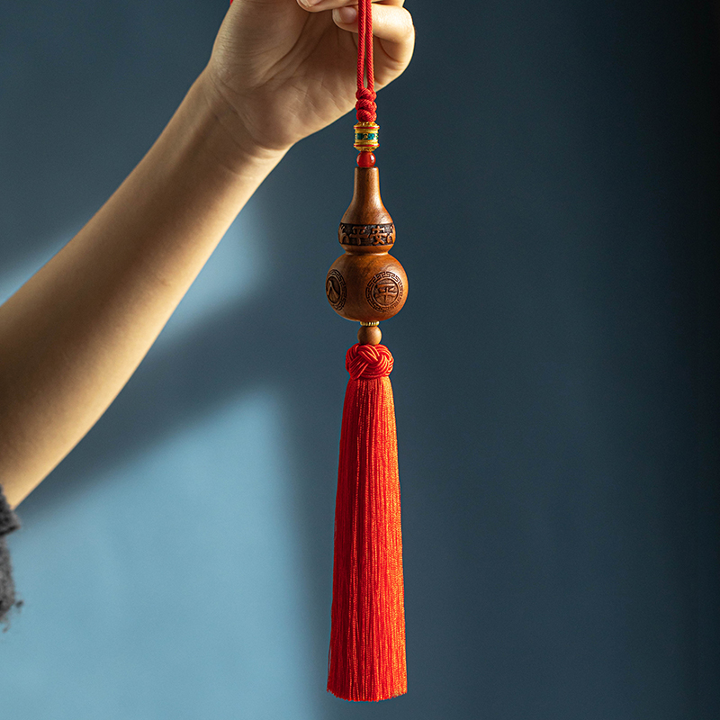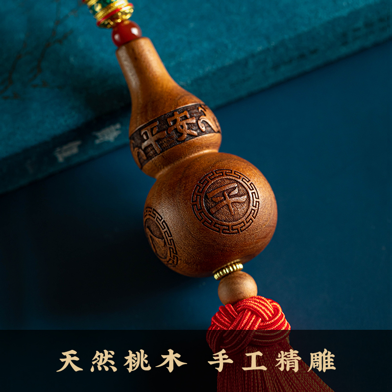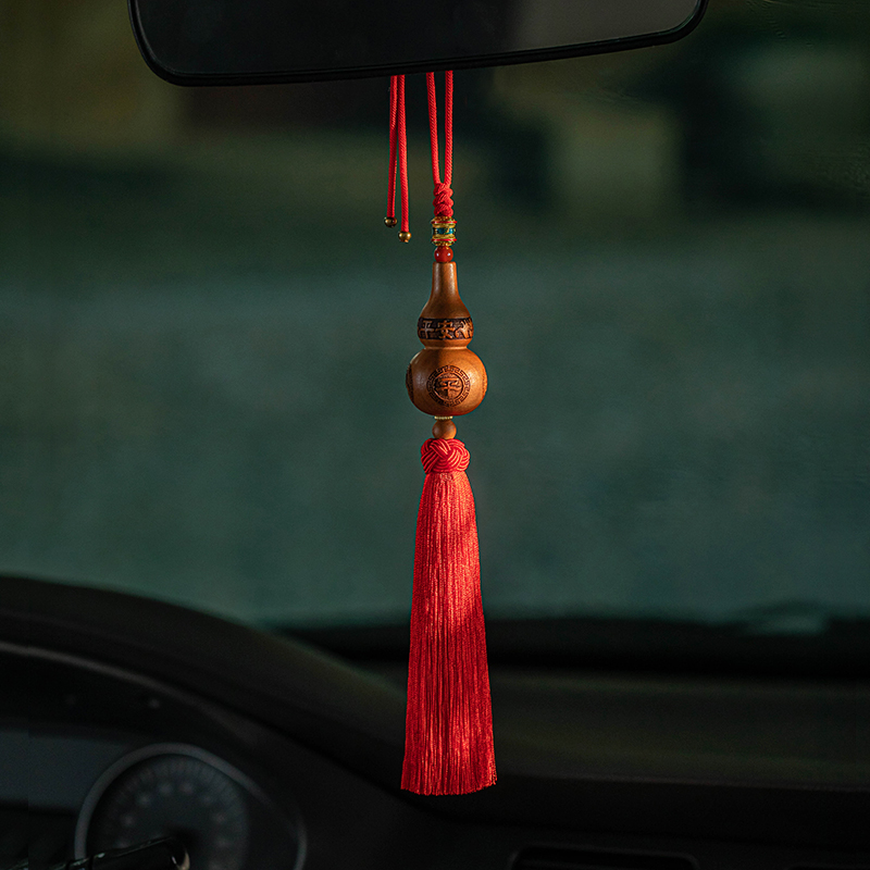 天然桃木葫芦汽车挂件高级感流苏新款 车载挂件后视镜吊饰出入平安