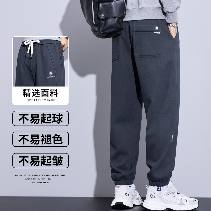 系带松紧宽松百搭休闲裤 鸭鸭羊毛蚕丝保暖卫裤 男士 新款 2025秋季