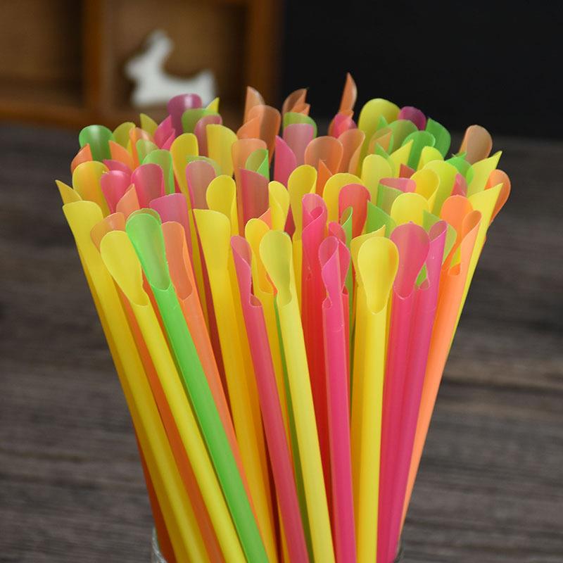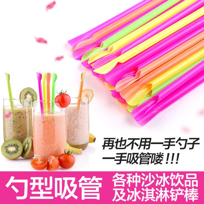 直销一次性奶茶吸管 彩色吸管定制 奶昔冰沙冷饮勺型吸管