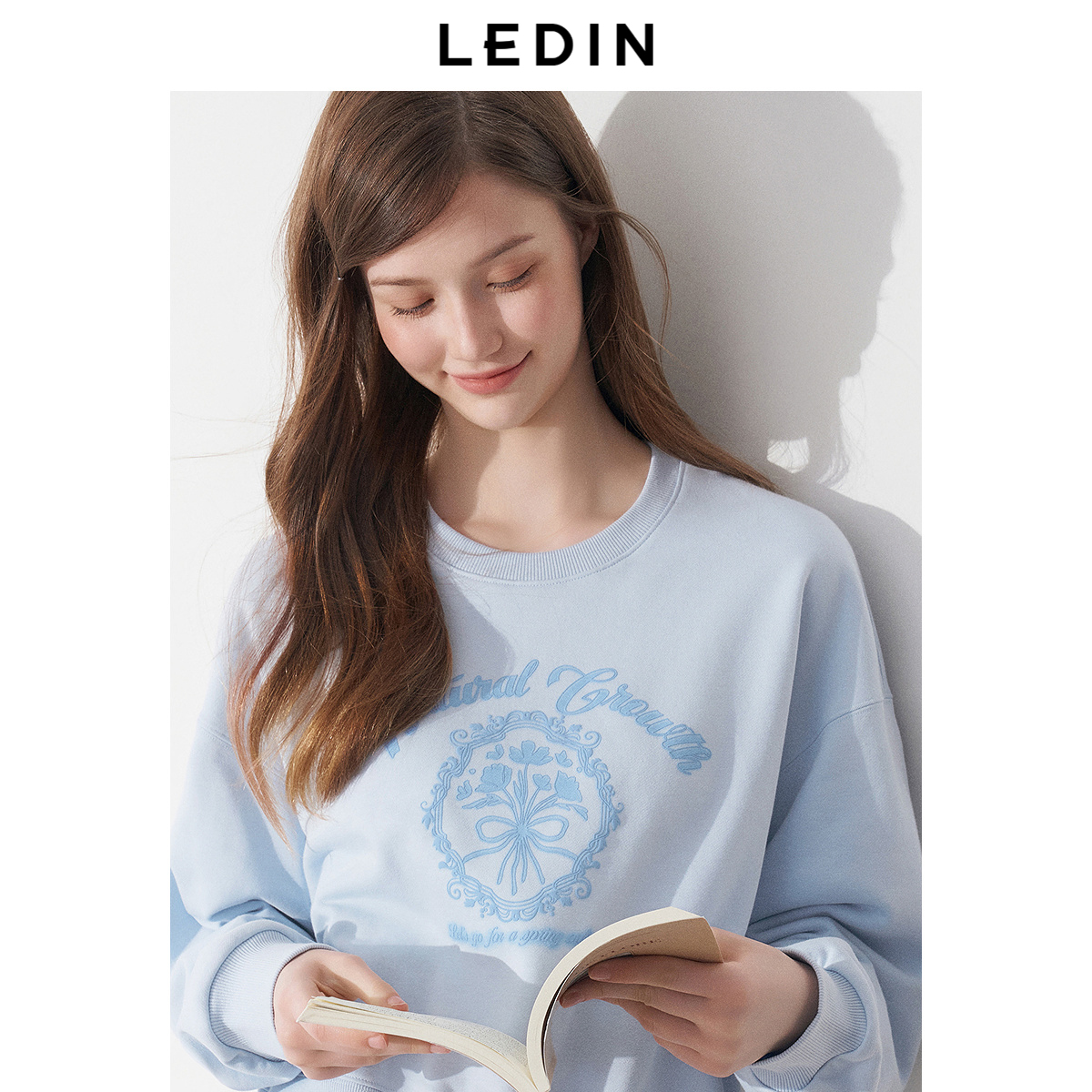 上衣 宽松短款 乐町韩系清甜圆领花朵字母印花蓝色卫衣2025春季 新款