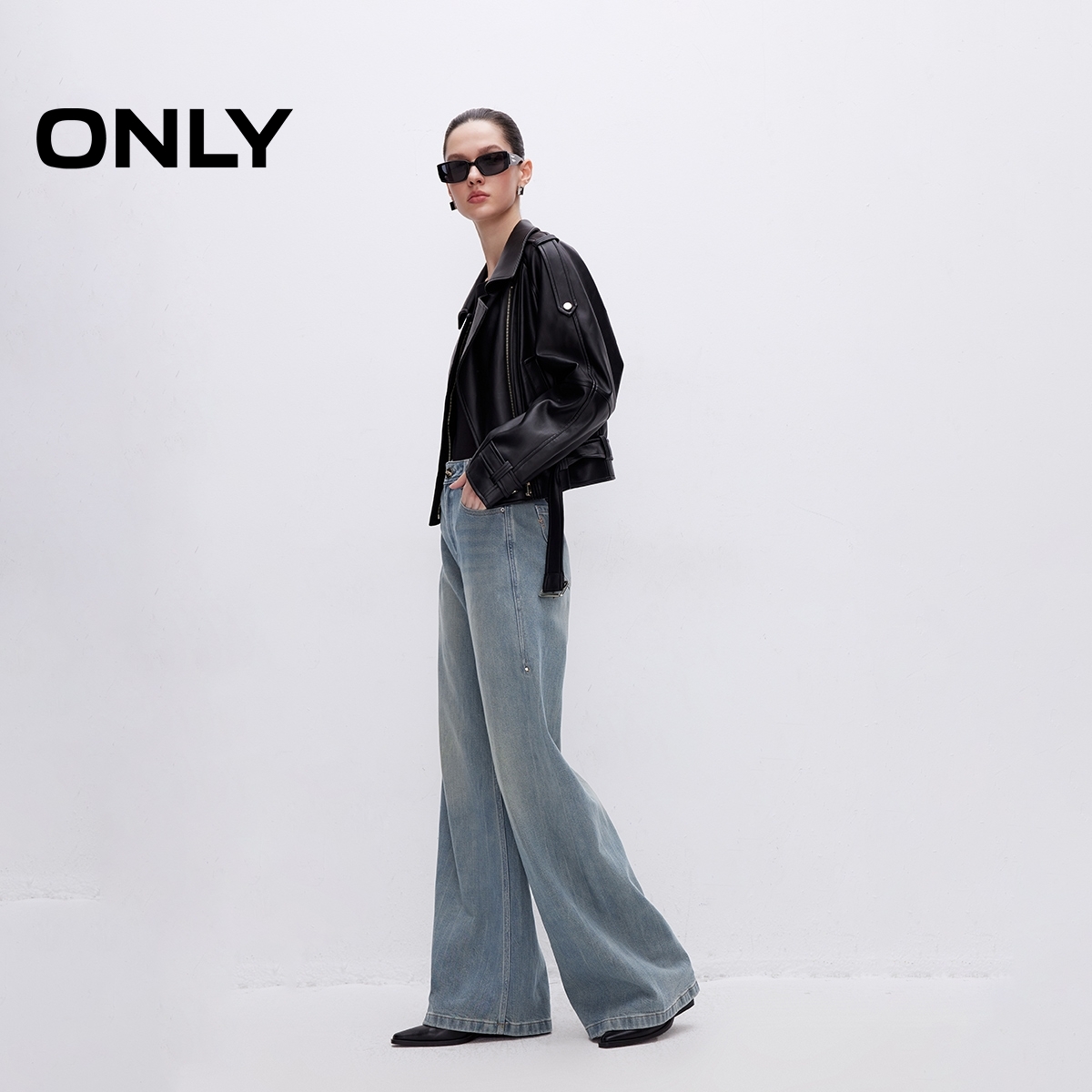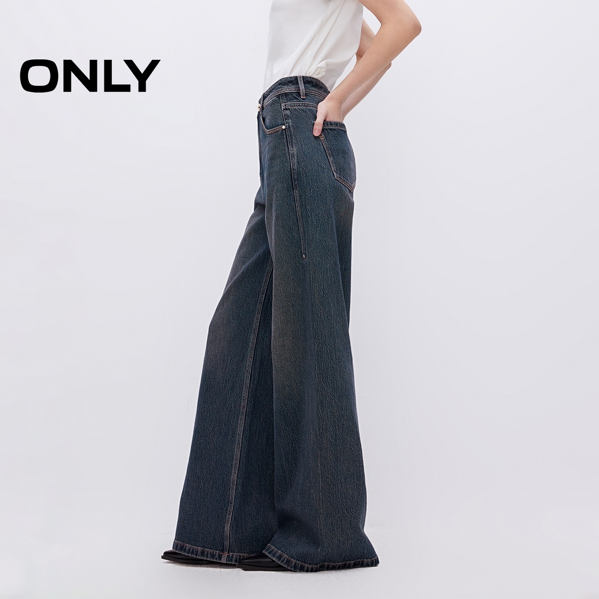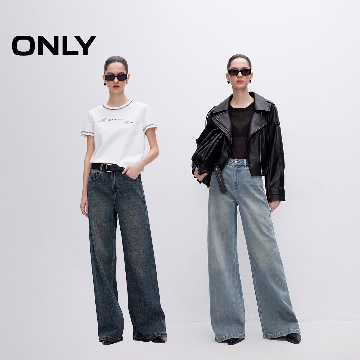 新款 牛仔裤 时尚 长裤 女 宽松高腰阔腿裤 ONLY奥莱2025秋季