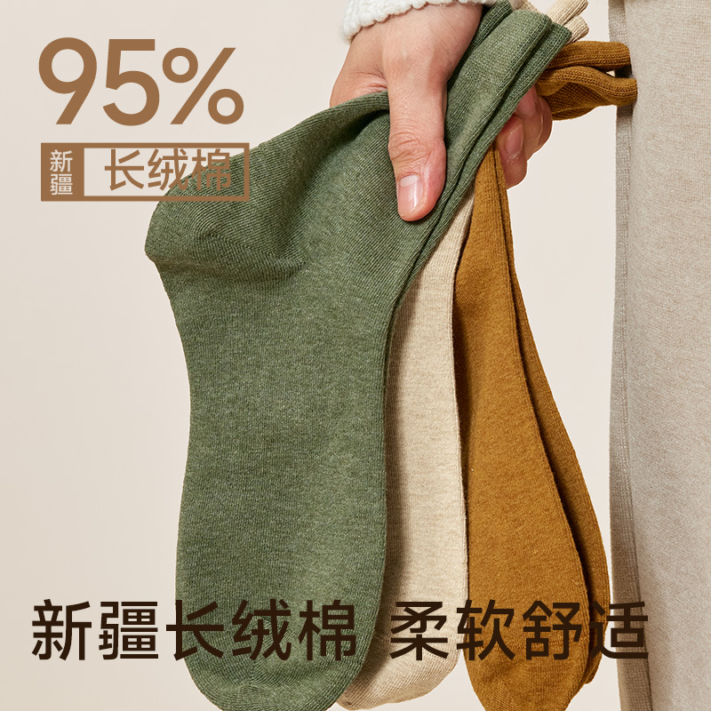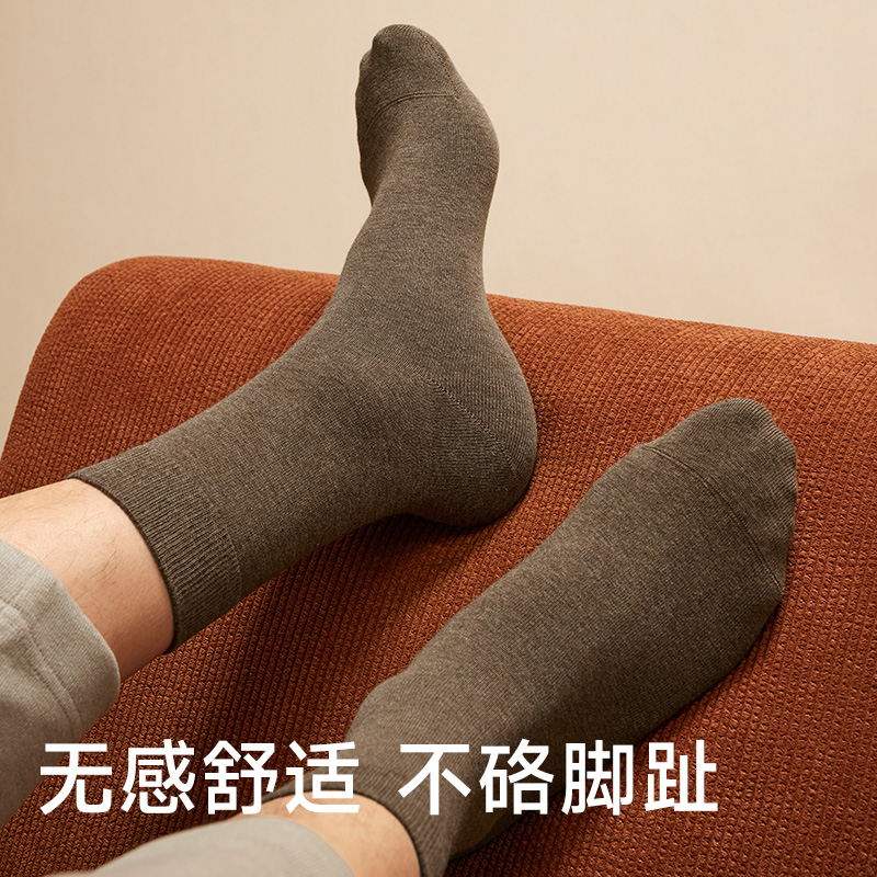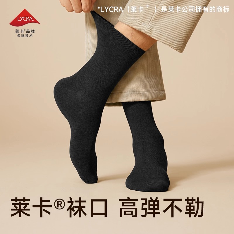 棉竹屋袜子男纯棉中筒袜春秋抗菌吸汗防臭黑色商务大码 长袜 男士