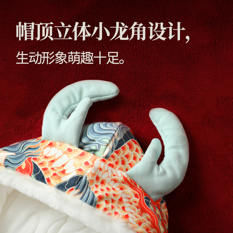 龙喜年婴儿宝宝汉服斗篷披风冬季 加厚 外出包被满月百天周岁新年装