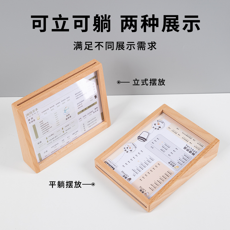 木质广告小牌子 桌牌立牌菜单价格桌标签酒店桌面立式 亚克力台卡架展示牌相框a4A5二维码 支付摆台奶茶店收付款