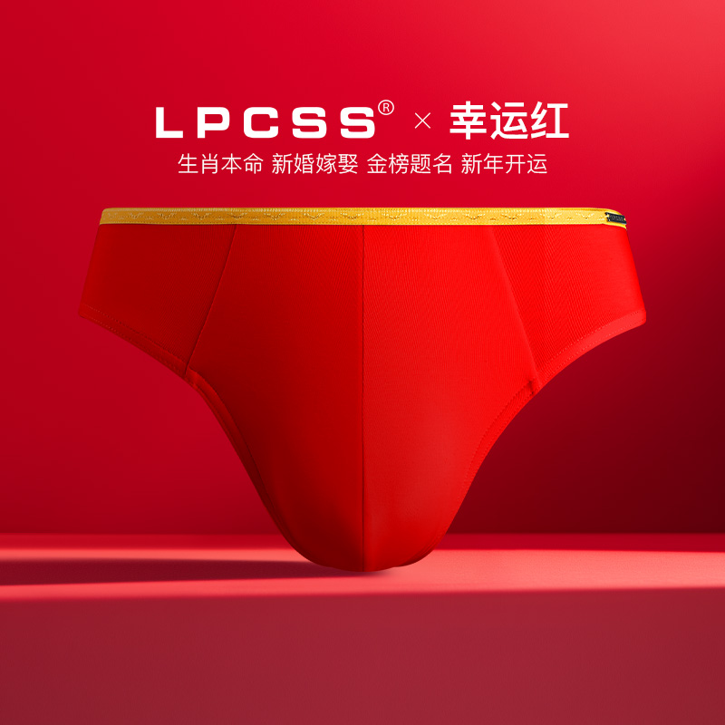 中腰莫代尔金色细腰边三角裤 鸿运系列本命年红装 内裤 LPCSS男士