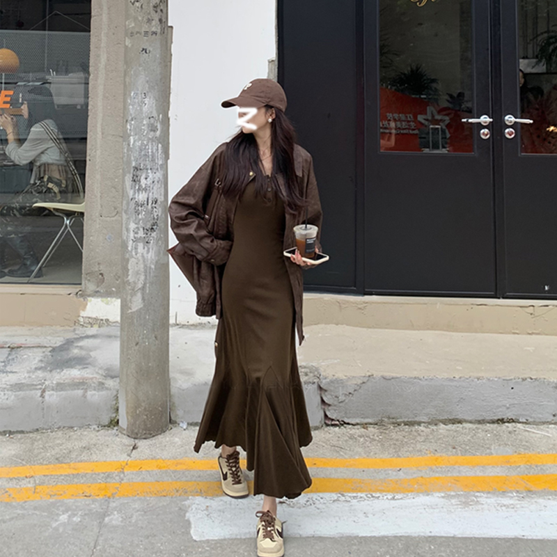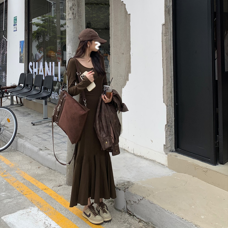 长款 DPLAY2025年秋季 红色连衣裙女好看气质洋气修身 法式 裙子 新款
