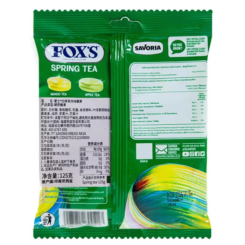 foxs霍士硬糖袋装 1袋 什锦水果味硬糖喜糖果休闲零食果汁味125g