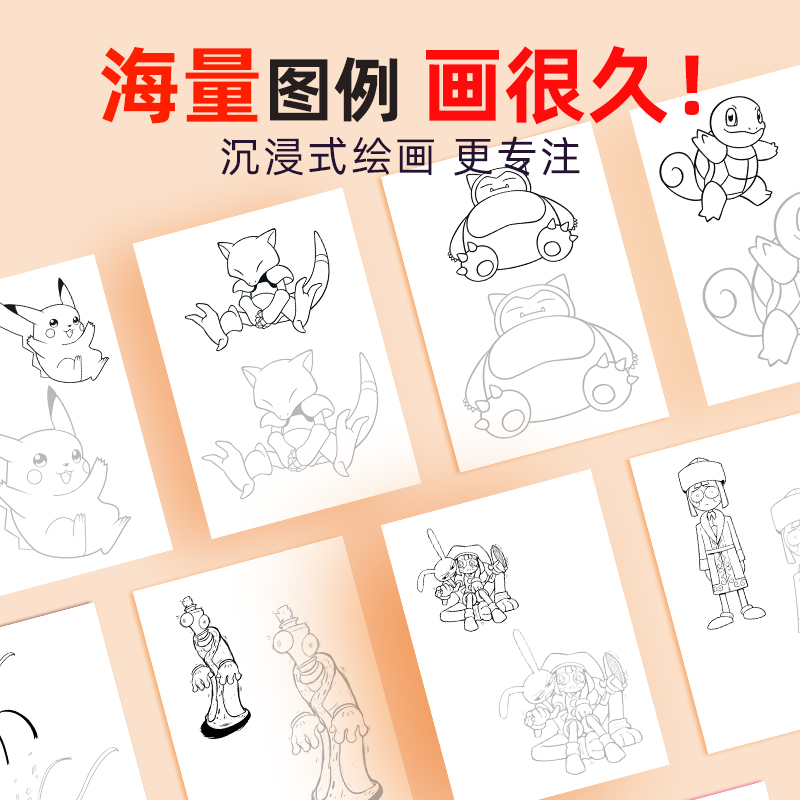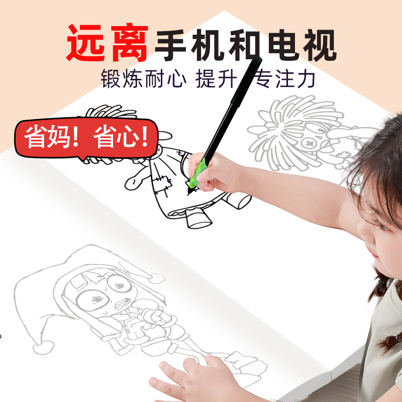我爱漫画描摹本 儿童卡通动漫描绘小学生画画临摹简笔画铅笔白描图涂鸦涂色训练练习绘画幼儿园入门画本画册