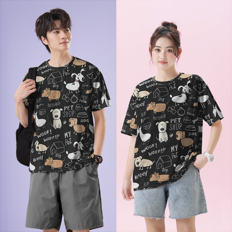 夏0015设 女装 无界 速干T恤男装 可爱丑萌狗狗文字涂鸦趣味卡通大码
