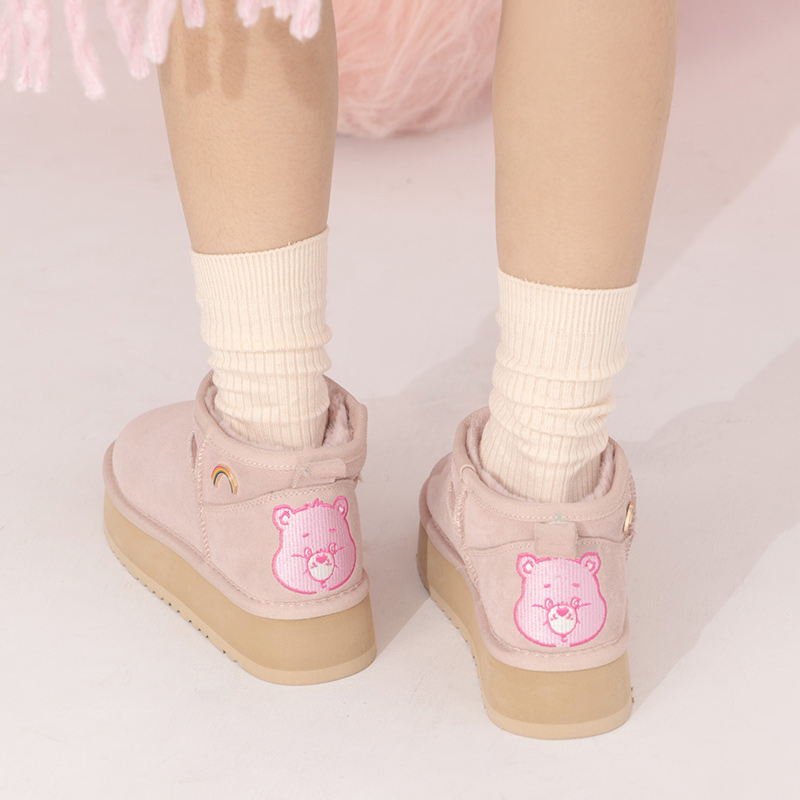 gift Carebears雪地靴女真皮刺绣加绒保暖靴子 Grace 台湾代购