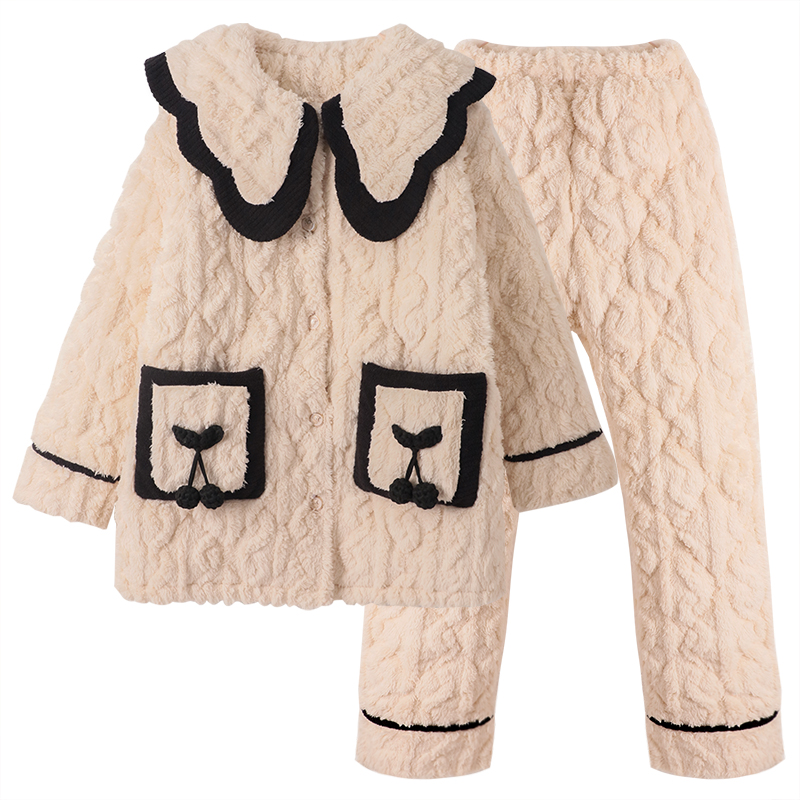 海岛绒可外穿家居服 简约薄款 睡衣女秋冬季 保暖珊瑚绒女士睡衣套装