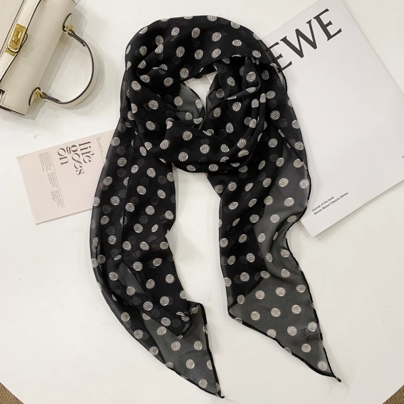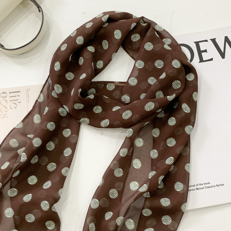 棕色波点丝巾印花高级百搭配饰系脖女2025年新款 发带绑发长条围巾
