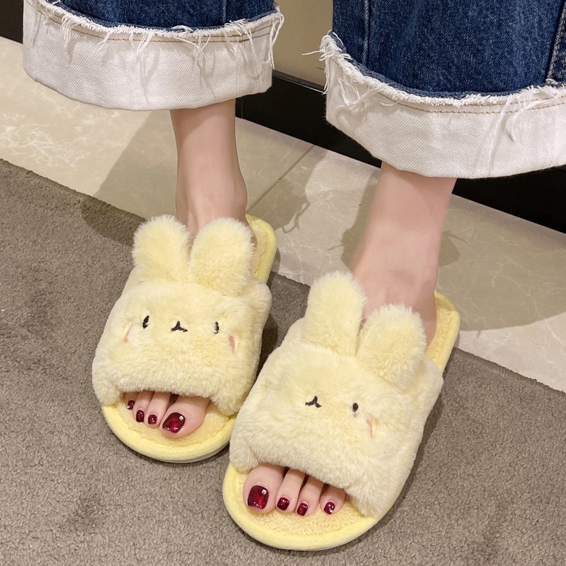 室内软底防滑加绒棉拖鞋 可爱兔子毛毛拖鞋 女家用外穿2024秋冬新款