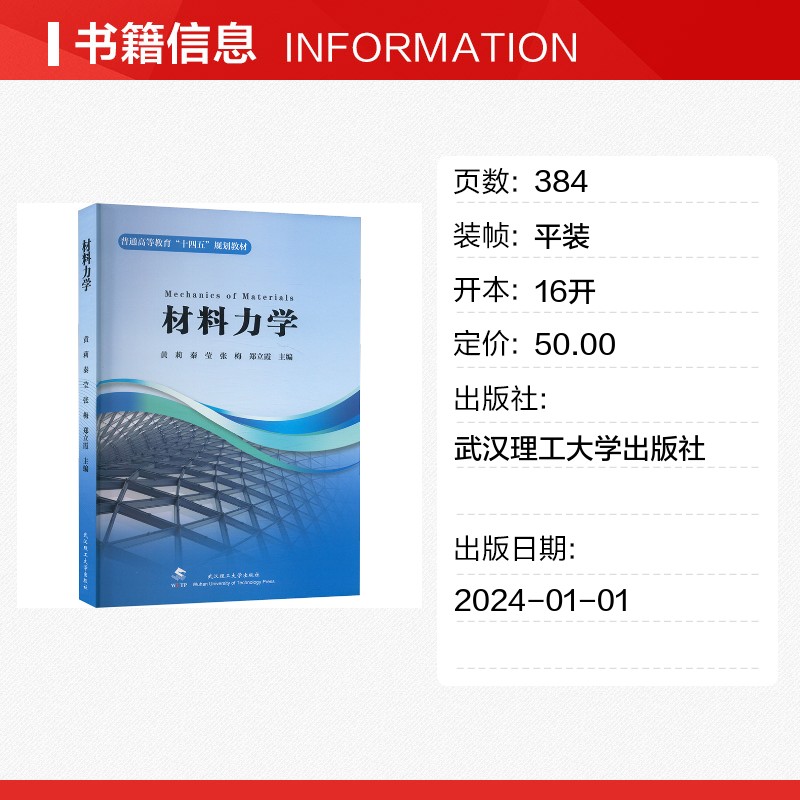 大学教材专业科技 社 等 武汉理工大学出版 图书籍 新华书店正版 编 黄莉 著 主编黄莉 材料力学