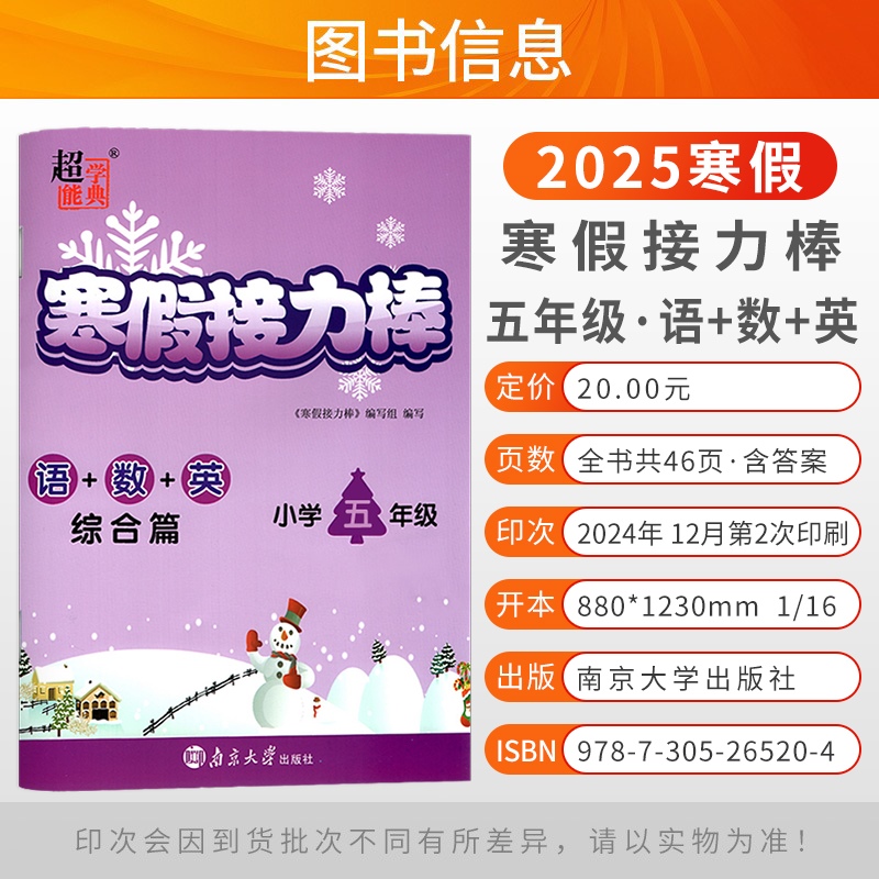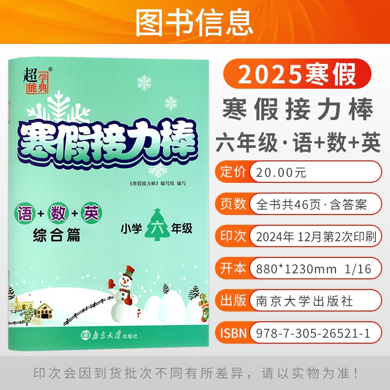 2025寒假适用超能学典寒假接力棒综合篇语文数学英语小学一二三四五六年级全一册寒假作业本练习册教辅教材辅导用书南京大学出版 社
