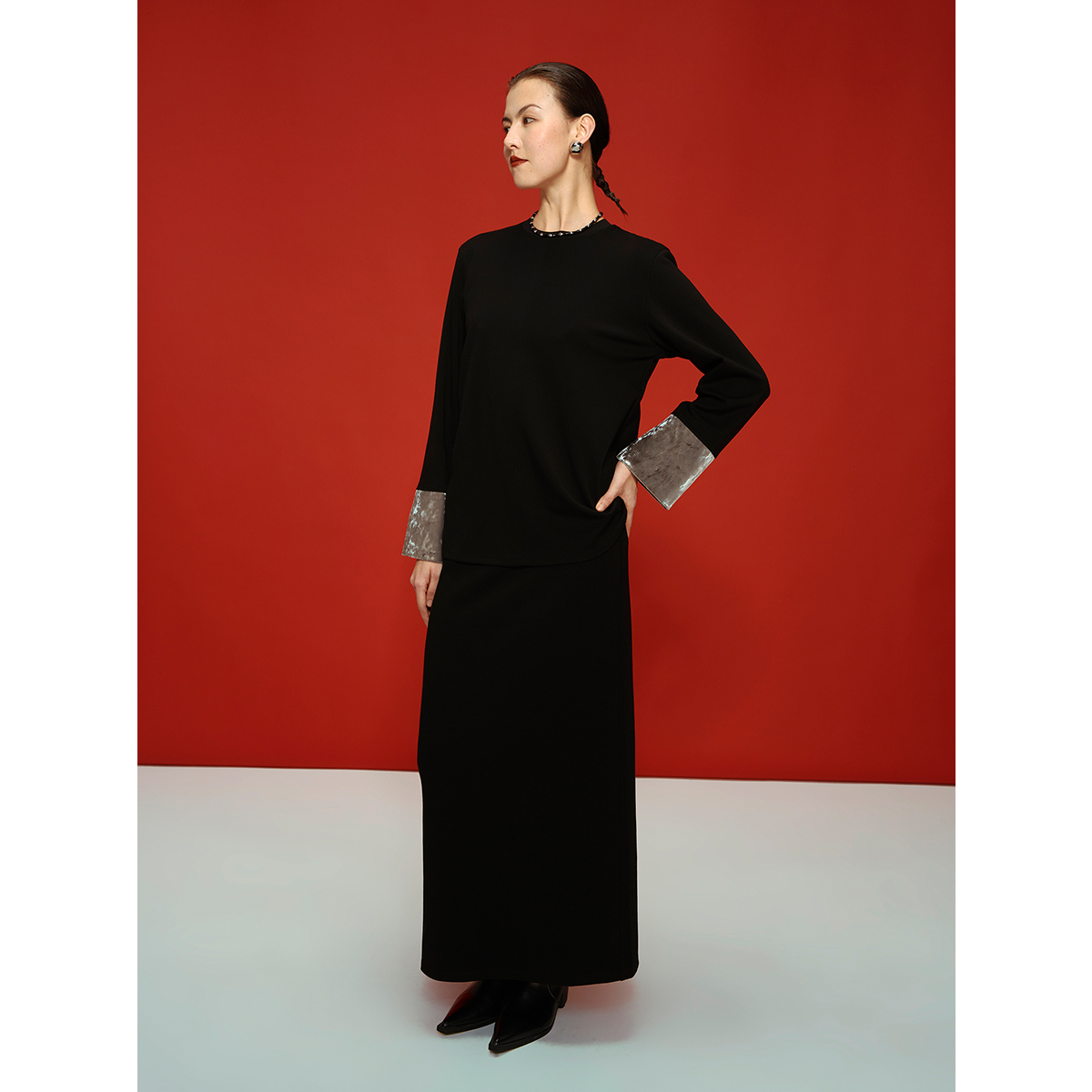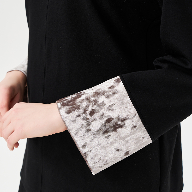 黑色圆领拼接卫衣女国风丝绒袖 新中式 口上衣 25春新款 OTT商场同款