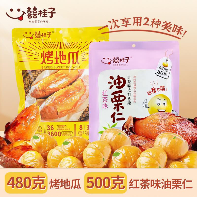 囍桂子油栗仁甘栗仁一斤两吃烤地瓜组合零食下午茶 老客专享