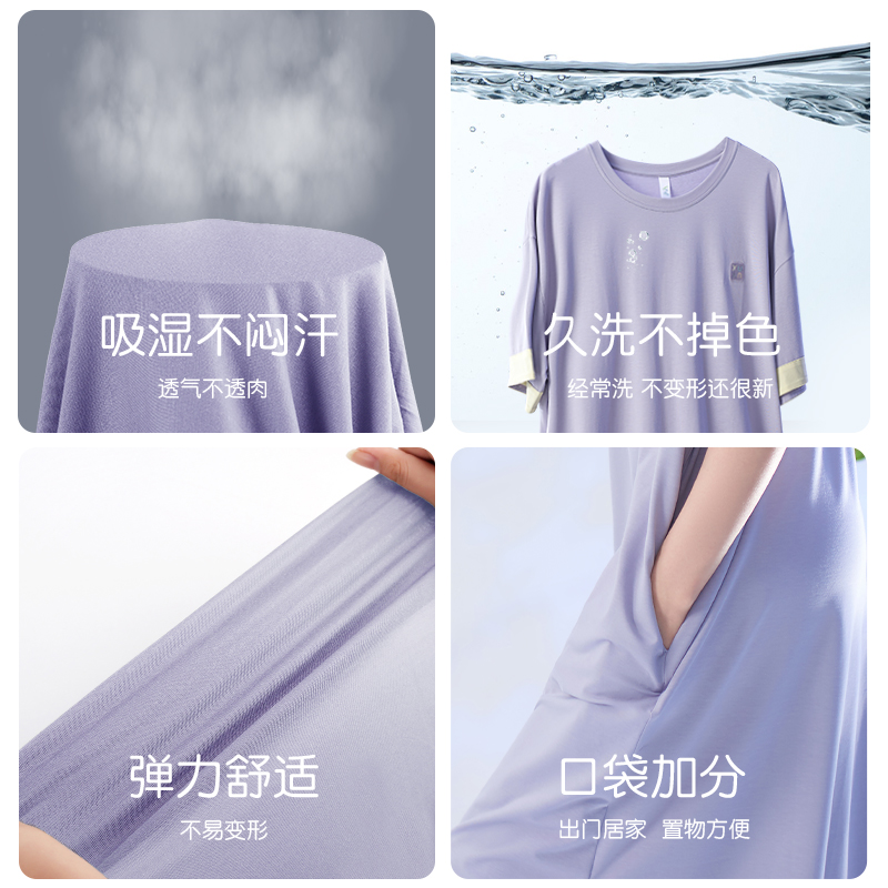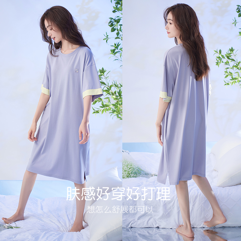 莫代尔棉睡衣冰丝凉感大码 短袖 休闲家居服裙子 薄款 轩靓睡裙女夏季