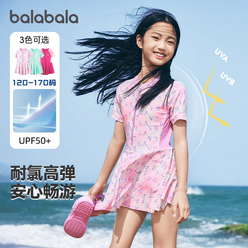 防晒潮 新款 巴拉巴拉女童连体泳衣中大童泳裙儿童游泳衣套装 25夏季