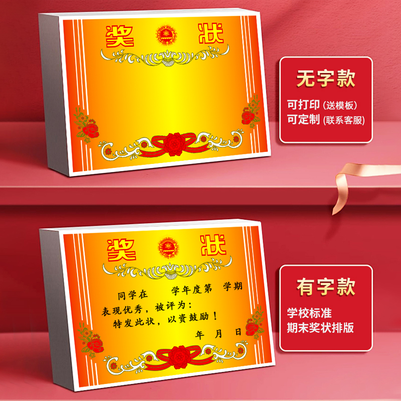 通用奖状小学生大奖状纸a4可打印定制a3空白模板制作8k荣誉定做优秀员工初中学生三好学生班级期末考试批发
