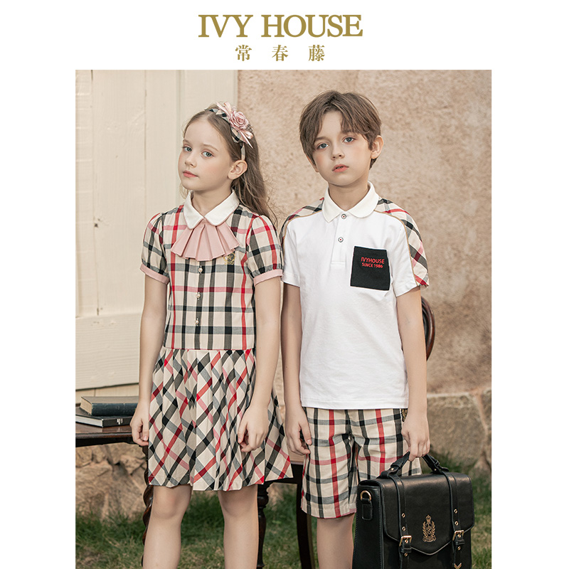 HOUSE常春藤儿童装 短裤 男童裤 休闲格子清爽透气五分裤 子夏款 IVY