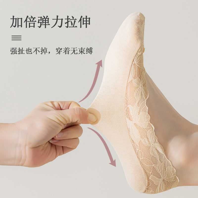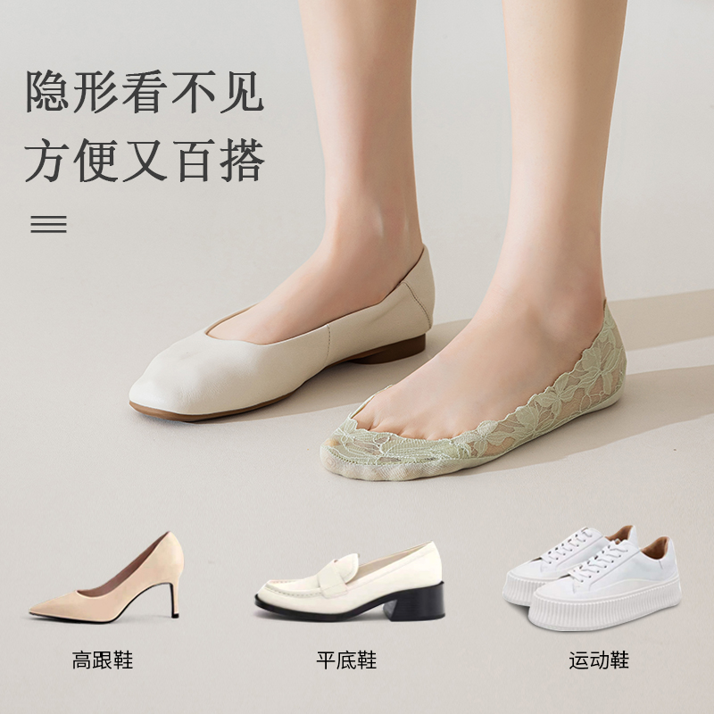 袜子 高跟鞋 船袜女纯棉底女士浅口蕾丝防滑不掉跟夏天薄款 隐形单鞋