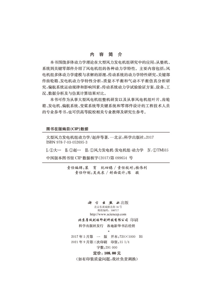 大型风力发电机组动力学赵萍等9787030526953科学出版 正版 社书籍KX 书
