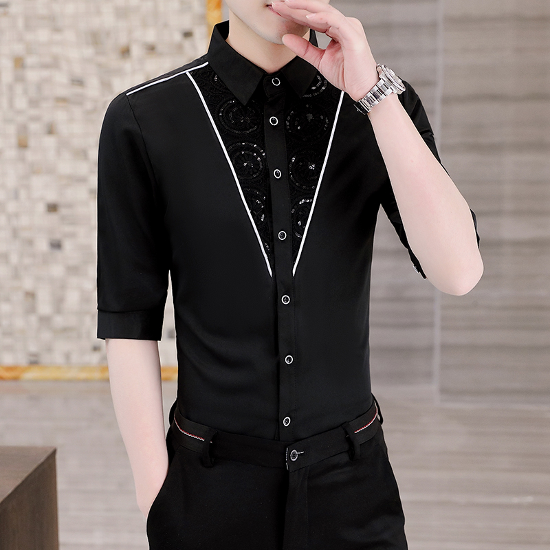 痞帅短袖 衬衫 小众设计感高级网红衬衣夜店潮牌个性 七分袖 男春夏季