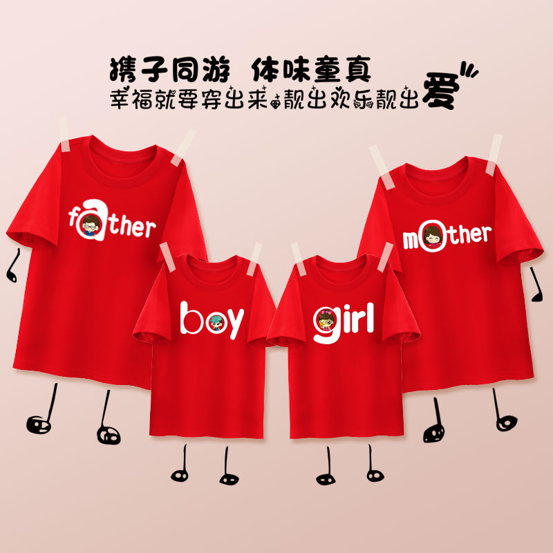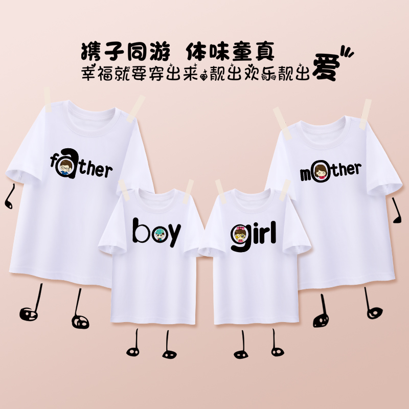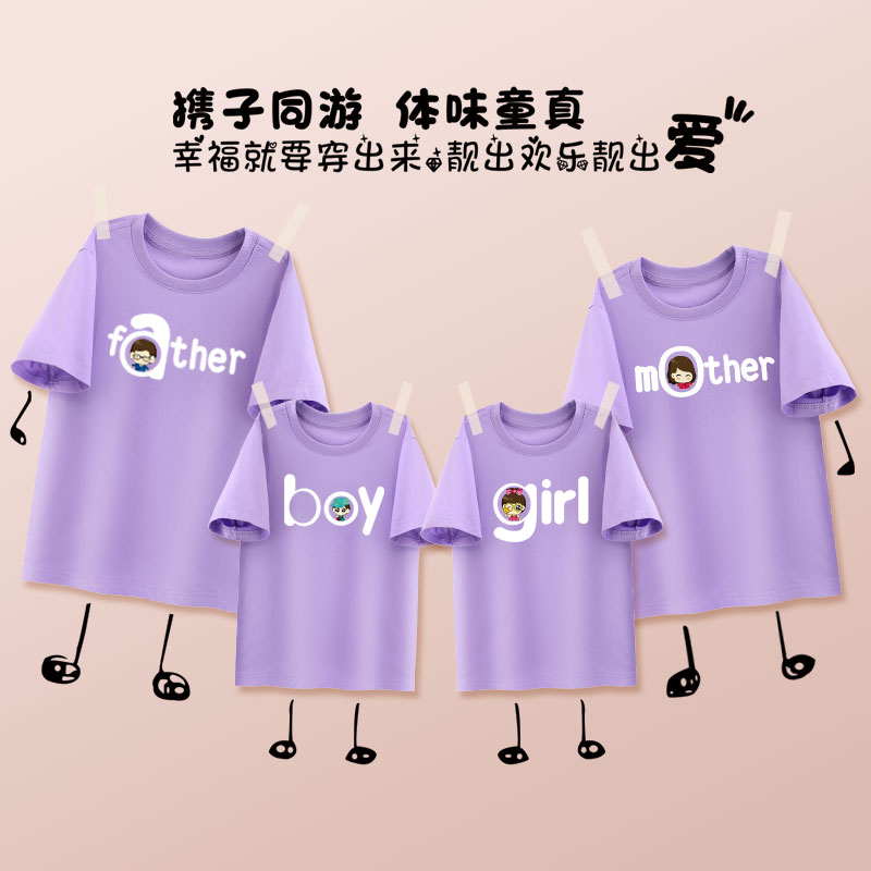 潮高端短袖 亲子装 全家福2025新款 网红一家三口母子母女装 t恤 夏装