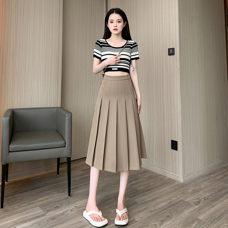 desire复古膝上直筒格纹波点半身裙25秋新款 orange 假日胶片